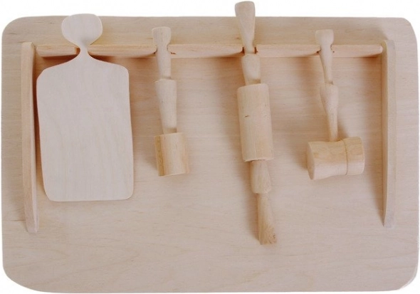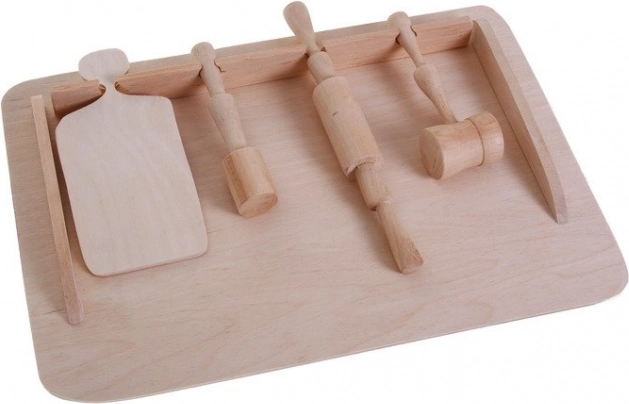 Il set comprende tutto il necessario per semplici attività culinarie e per trascorrere tempo insieme in cucina. Sviluppa alla grande destrezza, coordinazione e autonomia del bambino. Per una maggiore durata, è possibile trattare leggermente il legno con olio alimentare prima del primo utilizzo.