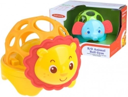 Questo gioco leggero e sicuro a forma di simpatico animaletto safari presenta una struttura flessibile e traforata con grandi aperture che facilitano la presa delle manine. All’interno si trova una pallina che, durante il movimento, si illumina ed emette un suono gioioso. Le orecchiette o la criniera morbide invitano al tatto e al morso, favorendo la percezione sensoriale.