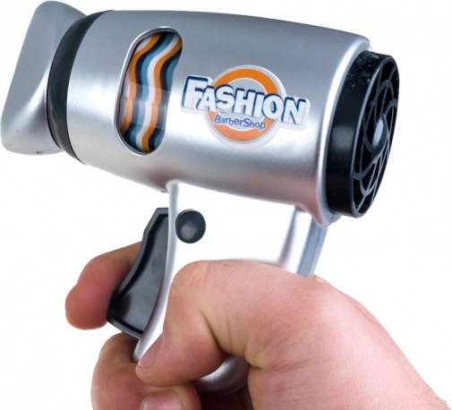 Il set contiene un asciugacapelli che aziona un tamburo rotante interno per un'esperienza più realistica quando si preme il pulsante.