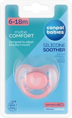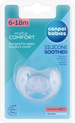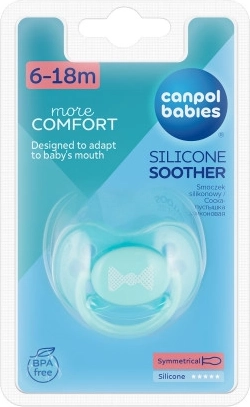 Il ciuccio PASTELS in silicone è realizzato in silicone trasparente, completamente insapore e inodore. Il ciuccio è privo di BPA. Confezione da 1 pezzo. Vantaggi dei ciucci Canpol babies: si sfiatano bene; potete verificarlo facilmente premendo la tettarella (non sottovalutate questa caratteristica: una scarsa ventilazione del ciuccio può portare a deformazioni del palato e dell’occlusione del bambino). I fori di ventilazione sullo scudo permettono un libero flusso d’aria, l’allontanamento della saliva e prevengono così l’irritazione della pelle intorno alla bocca. L’anello di sicurezza del ciuccio è ben saldo, facilita una presa comoda per il bambino e aiuta i genitori ad agganciare clip o catenella. I ciucci sono disponibili in attraenti colori pastello e design originali. Abbinate al ciuccio una custodia nello stesso design. Istruzioni per l’uso: Prima del primo utilizzo sterilizzare il ciuccio per motivi igienici in acqua bollente per circa 5 minuti. Dopo il raffreddamento, spremere l’acqua residua dalla tettarella. Prima di ogni utilizzo lavare accuratamente il ciuccio in acqua tiepida. Non utilizzare detergenti antibatterici o chimici. Un uso eccessivo di detergenti può danneggiare le parti in plastica. Non immergere mai il ciuccio in sostanze zuccherate o medicinali: esponete il bambino al rischio di carie dello smalto. Utilizzare il ciuccio per un massimo di 1-2 mesi, quindi sostituirlo per motivi igienici e di sicurezza. Se il ciuccio entra interamente nella bocca del bambino, NON ALLARMATEVI: è progettato in modo che il bambino non possa ingoiarlo e possa essere rimosso in sicurezza dalla bocca. Rimuovetelo nel modo più delicato possibile. Conservare il ciuccio in un contenitore pulito, asciutto e chiuso. Si sconsiglia l’uso dei ciucci nei bambini sopra i 3 anni. Importante! Per la sicurezza e la salute del vostro bambino! Controllare lo stato del ciuccio prima di ogni somministrazione al bambino. Verificare l’integrità della tettarella tirandola accuratamente in tutte le direzioni. Ai primi segni di danneggiamento, gettare immediatamente il ciuccio e non utilizzarlo oltre. Usare solo clip e catenelle per ciuccio conformi alla norma EN12586. Non fissare mai il ciuccio a cordini, lacci o nastri di abbigliamento: il bambino potrebbe soffocare. Non lasciare il ciuccio alla luce diretta del sole, vicino a fonti di calore o in soluzioni disinfettanti più a lungo del tempo raccomandato: si può indebolire la tettarella. Tenere il cappuccio rimosso fuori dalla portata del bambino per evitare un possibile soffocamento. Il ciuccio è conforme a: Direttiva 2001/95/CE del Parlamento europeo e del Consiglio sulla sicurezza generale dei prodotti. EN 1400-1 Prodotti per la cura del bambino – Ciucci per lattanti e bimbi piccoli – Parte 1: Requisiti generali di sicurezza e informazioni sul prodotto. EN 1400-2 Prodotti per la cura del bambino – Ciucci per lattanti e bimbi piccoli – Parte 2: Requisiti meccanici e prove. EN 1400-3 Prodotti per la cura del bambino – Ciucci per lattanti e bimbi piccoli – Parte 3: Requisiti chimici e prove.