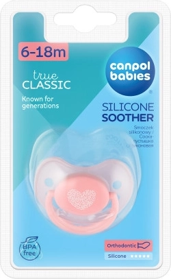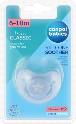 Il ciuccio della collezione PASTELS è dotato di tettarella di forma anatomica ed è realizzato in silicone trasparente, completamente insapore e inodore. Inoltre è decorato con graziosi motivi in colori pastello. Il ciuccio è privo di BPA.Vantaggi dei ciucci Canpol babies: si sfiatano bene; è facile verificarlo premendo la tettarella (non sottovalutate questa caratteristica: una cattiva aerazione del ciuccio può portare a deformazioni del palato e della dentatura del bambino); i fori di ventilazione nel disco del ciuccio consentono un libero flusso d’aria, drenano la saliva e prevengono così l’irritazione della pelle intorno alla bocca; l’anello di sicurezza del ciuccio è saldamente fissato, facilita una presa comoda per il bambino e aiuta i genitori ad agganciare clip o catenella; i ciucci sono disponibili in colori vivaci e design originali.Istruzioni per l’uso: prima del primo utilizzo sterilizzare il ciuccio per motivi igienici in acqua bollente per circa 5 minuti. Dopo il raffreddamento, spremere l’acqua residua dalla tettarella. Prima di ogni utilizzo lavare accuratamente il ciuccio in acqua tiepida. Non utilizzare detergenti antibatterici o chimici. Un uso eccessivo di detergenti può danneggiare le parti in plastica. Non immergere mai il ciuccio in sostanze zuccherate o medicinali: esponete il bambino al rischio di carie dello smalto dentale. Utilizzare il ciuccio per un massimo di 1-2 mesi, quindi sostituirlo per motivi di igiene e sicurezza. Se il ciuccio entra completamente nella bocca del bambino, NON FATEVI PRENDERE DAL PANICO: è progettato in modo tale che il bambino non possa ingoiarlo e potete rimuoverlo in sicurezza dalla bocca. Rimuovetelo con la massima delicatezza possibile. Conservate il ciuccio in una custodia pulita, asciutta e chiusa. Si sconsiglia l’uso dei ciucci nei bambini di età superiore ai 3 anni.Importante! Per la sicurezza e la salute del vostro bambino! Prima di ogni utilizzo controllate lo stato del ciuccio. Verificate la qualità della tettarella tirandola accuratamente in tutte le direzioni. Ai primi segni di danno, gettate immediatamente il ciuccio e non utilizzatelo oltre. Usate solo clip e catenelle per ciuccio conformi alla norma EN12586. Non fissate mai il ciuccio a cordini, lacci o nastri di abbigliamento: il bambino potrebbe soffocare. Non lasciate il ciuccio alla luce diretta del sole, vicino a fonti di calore o in soluzioni disinfettanti più a lungo del raccomandato: potreste indebolire la tettarella. Tenete il cappuccio rimosso fuori dalla portata del bambino per evitare possibili rischi di soffocamento.Il ciuccio in silicone è conforme ai requisiti di: Direttiva 2001/95/CE del Parlamento europeo e del Consiglio sulla sicurezza generale dei prodotti; EN 1400-1 Prodotti per la cura del bambino - Ciucci per lattanti e bambini piccoli - Parte 1: Requisiti generali di sicurezza e informazioni sul prodotto; EN 1400-2 Prodotti per la cura del bambino - Ciucci per lattanti e bambini piccoli - Parte 2: Requisiti meccanici e prove; EN 1400-3 Prodotti per la cura del bambino - Ciucci per lattanti e bambini piccoli - Parte 3: Requisiti chimici e prove.