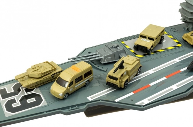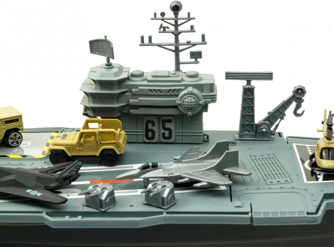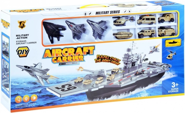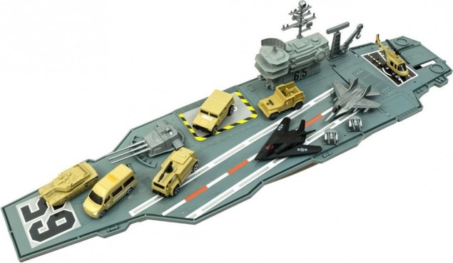 - Portaerei, 3× caccia, 1× elicottero, 1× carro armato, 4× veicoli militari, figurine di soldati