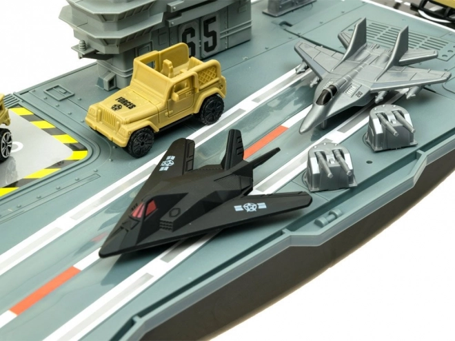 - Base militare completa – portaerei, velivoli, veicoli e figurine in un unico set.