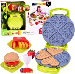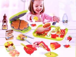 Fantastico set cucina con waffle permette a ogni piccolo chef di preparare dolci waffle, patatine e hamburger. Realizzato in plastica sicura, ideale per i bambini che amano giocare a cucinare.
