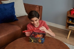 La pratica organizzazione su due piani ospita fino a 6 Bakugan, 2 mazzi di carte e anelli d’attacco. Il coperchio rimovibile si trasforma all’istante in un’arena per sfidarsi ovunque.
