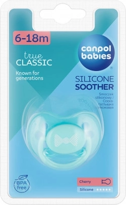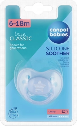 Il ciuccio in silicone PASTELS è realizzato in silicone trasparente, completamente privo di sapore e odore. Il ciuccio non contiene BPA. Confezione da 1 pezzo. Vantaggi dei ciucci Canpol babies: si sfiatano bene, è facile verificarlo premendo la tettarella (non sottovalutate questa caratteristica del ciuccio: una scarsa aerazione può portare a deformazioni del palato e dell’occlusione del bambino); i fori di ventilazione nello scudo del ciuccio consentono un libero flusso d’aria, drenano la saliva e prevengono l’irritazione della pelle attorno alla bocca; l’anello di sicurezza del ciuccio è saldamente fissato, facilita una presa comoda per il bambino e permette ai genitori di attaccare una clip o una catenella; i ciucci sono disponibili in attraenti colori pastello e con design originali. Completa il ciuccio con una custodia coordinata dello stesso design. Istruzioni per l’uso: Prima del primo utilizzo, per motivi igienici, sterilizzare il ciuccio in acqua bollente per circa 5 minuti. Dopo il raffreddamento, spremere l’acqua residua dalla tettarella. Prima di ogni utilizzo, lavare accuratamente il ciuccio in acqua tiepida. Non utilizzare detergenti antibatterici o chimici. L’uso eccessivo di detergenti può danneggiare le parti in plastica. Non immergere mai il ciuccio in sostanze zuccherate o medicinali: espone il bambino al rischio di carie e danni allo smalto. Utilizzare il ciuccio per un massimo di 1-2 mesi, quindi sostituirlo per motivi igienici e di sicurezza. Se il ciuccio entra interamente nella bocca del bambino, non fatevi prendere dal panico: è progettato in modo che il bambino non possa ingoiarlo e può essere rimosso in sicurezza dalla bocca. Rimuovere il ciuccio con la massima delicatezza possibile. Conservare il ciuccio in una custodia pulita, asciutta e chiusa. Si sconsiglia l’uso dei ciucci per bambini oltre i 3 anni. Importante! Per la sicurezza e la salute del vostro bambino! Controllare il ciuccio prima di ogni utilizzo. Verificare l’integrità della tettarella tirandola accuratamente in tutte le direzioni. Ai primi segni di danneggiamento, gettare immediatamente il ciuccio e non utilizzarlo più. Utilizzare solo clip e catenelle per ciuccio conformi alla norma EN12586. Non fissare mai il ciuccio con cordini, lacci o nastri dei vestiti: rischio di strangolamento. Non lasciare il ciuccio alla luce solare diretta, vicino a fonti di calore o in soluzioni disinfettanti più a lungo del raccomandato: si può indebolire la tettarella. Tenere il cappuccio rimosso fuori dalla portata dei bambini per evitare il rischio di soffocamento. Il ciuccio è conforme a: Direttiva 2001/95/CE del Parlamento europeo e del Consiglio sulla sicurezza generale dei prodotti; EN 1400-1 Prodotti per la puericultura - Ciucci per neonati e bambini piccoli - Parte 1: Requisiti generali di sicurezza e informazioni sul prodotto; EN 1400-2 Prodotti per la puericultura - Ciucci per neonati e bambini piccoli - Parte 2: Requisiti meccanici e prove; EN 1400-3 Prodotti per la puericultura - Ciucci per neonati e bambini piccoli - Parte 3: Requisiti e prove chimiche.