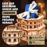 Include uno scomparto segreto (6 × 3,7 × 3,7 cm) dove puoi nascondere un indizio, un messaggio o un piccolo regalo – perfetto per una sorpresa originale. Nella confezione trovi un manuale illustrato e un QR code con suggerimenti, per non rimanere bloccato troppo a lungo. Grazie alla costruzione robusta, dopo averlo risolto il rompicapo può essere condiviso con amici e famiglia.