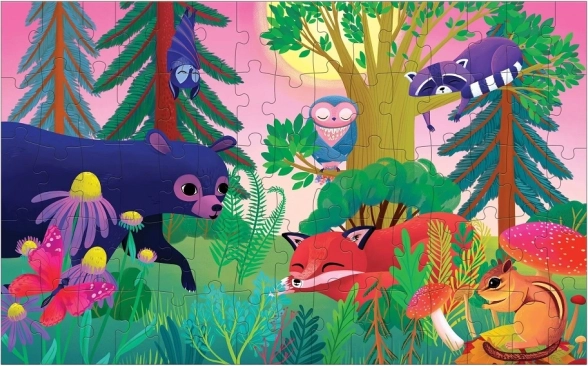 Questo puzzle creativo da 75 pezzi entusiasmerà i bambini con la trasformazione interattiva del soggetto: basta guardare l’immagine da un’angolazione diversa e la foresta si commuta dal giorno alla notte. Grazie alla stampa precisa con inchiostri atossici e alla finitura opaca risaltano i dettagli e le tonalità vivaci.
