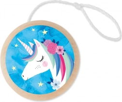 Il classico yo-yo in legno con motivo di unicorno è colorato dipinto e divertente. È perfetto per sviluppare destrezza e coordinazione nei bambini.