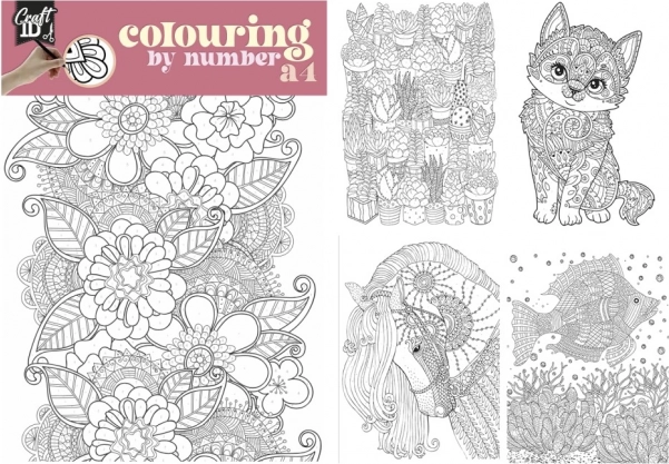 - Cinque immagini progettate in dettaglio da dipingere per numero.
