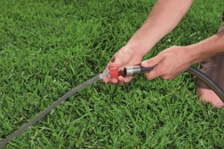 L’irrigatore incorporato al centro della piscinetta crea uno spruzzo d’acqua: basta collegare un normale tubo da giardino e il divertimento può iniziare.