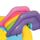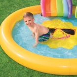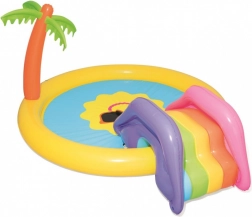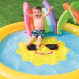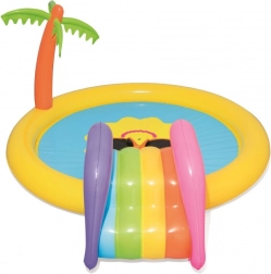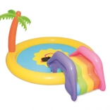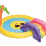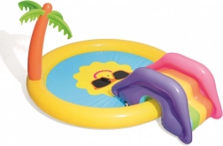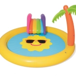 Trasforma il giardino in un mini parco acquatico! Il parco acquatico BESTWAY per bambini con motivo del sole sorridente invita a scatenarsi e rinfrescarsi nelle giornate calde. Basta collegare il tubo da giardino e l’irrigatore integrato creerà una fontanella rinfrescante. Lo scivolo removibile dal design colorato farà felici i piccoli avventurieri, mentre il vinile morbido e robusto garantisce un gioco comodo e sicuro.
