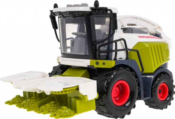 Mietitrebbia interattiva con funzioni sonore e luminose e parti mobili, pensata per i piccoli appassionati di agricoltura dai 3 anni in su. La mietitrebbia è realizzata nei colori tipici di questo tipo di macchine ed è dotata di ringhiere e di un alimentatore del grano. Il veicolo ha ruote girevoli con battistrada e cabina “vetrata”. La mietitrebbia emette suoni di motore, clacson e avviso, e sul tetto è presente un pannello sonoro con pulsanti. I suoni sono accompagnati da luci LED lampeggianti sulla parte superiore della cabina. La mietitrebbia si muove fluidamente sul terreno grazie alla trazione a frizione. Il giocattolo è alimentato da 3 batterie AG13 da 1,5 V, incluse nella confezione.