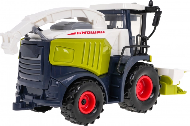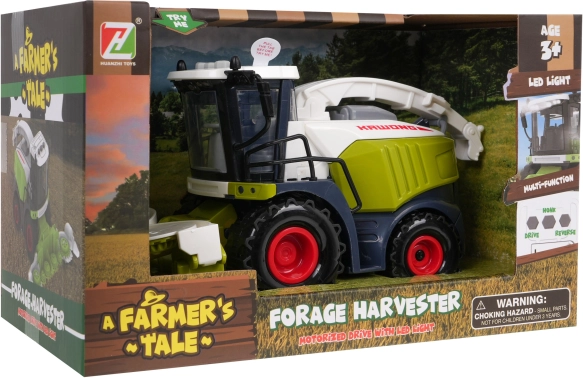 Mietitrebbia interattiva con funzioni sonore e luminose e parti mobili, pensata per i piccoli appassionati di agricoltura dai 3 anni in su. La mietitrebbia è realizzata nei colori tipici di questo tipo di macchine ed è dotata di ringhiere e di un alimentatore del grano. Il veicolo ha ruote girevoli con battistrada e cabina “vetrata”. La mietitrebbia emette suoni di motore, clacson e avviso, e sul tetto è presente un pannello sonoro con pulsanti. I suoni sono accompagnati da luci LED lampeggianti sulla parte superiore della cabina. La mietitrebbia si muove fluidamente sul terreno grazie alla trazione a frizione. Il giocattolo è alimentato da 3 batterie AG13 da 1,5 V, incluse nella confezione. Specifiche: .- la mietitrebbia avanza e retrocede, .- grandi ruote con trazione anteriore a frizione, .- funzioni sonore: funzionamento del motore, clacson, segnali di avvertimento, .- funzioni luminose: fari anteriori a LED funzionanti, .- sollevamento e abbassamento della testata (manuale), .- ribaltamento delle sponde laterali dei cancelli (manuale), .- rotelline anteriori girevoli (manuali), .- sollevamento e abbassamento delle alette laterali sopra le ruote posteriori (manuale), .- alimentatore del grano sollevabile e ruotabile a 360 gradi (manuale), .- canale di scarico del grano sul convogliatore sollevabile e ruotabile a 360 gradi (manuale), .- gancio sul retro della mietitrebbia. . |