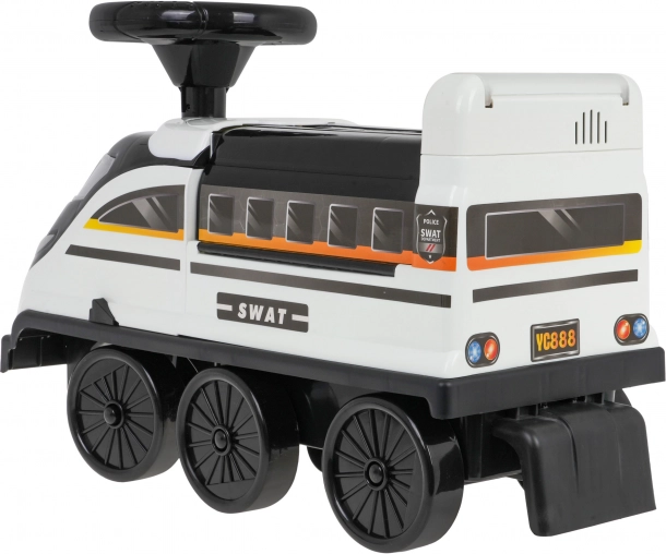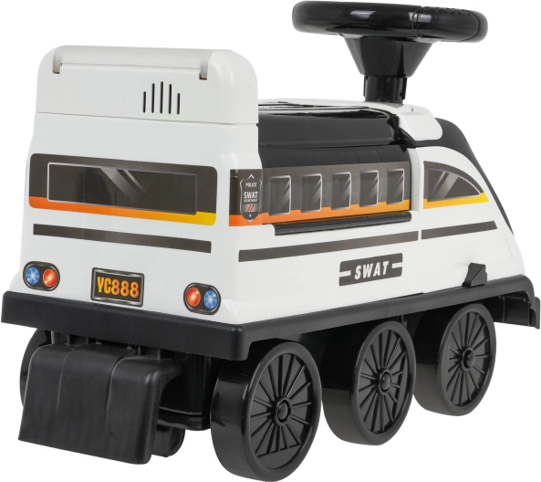 Il camminatore interattivo a forma di locomotiva offre esperienze di gioco inconfondibili. Realizzato in plastica di alta qualità, resistente e atossica. Questo camminatore si muove su sei ruote, di cui le due anteriori sono sterzanti. Sotto il sedile si trova un parco della polizia apribile con rampe, ascensore mobile, sbarra apribile, sollevatore e rotella girevole.
