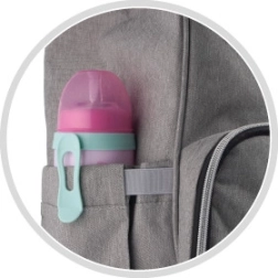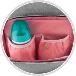 La tasca termica integrata mantiene la bevanda alla temperatura desiderata più a lungo e le cinghie permettono di fissare facilmente lo zaino al passeggino.