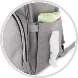 La suddivisione intelligente dello zaino, con tasca impermeabile e fasciatoio lavabile, mantiene tutte le necessità in modo ordinato e igienico.