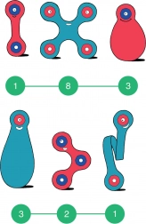 La forma unica e la struttura flessibile permettono di piegare, torcere e collegare i pezzi in modelli piani e tridimensionali: da semplici animaletti a macchine di fantasia.