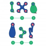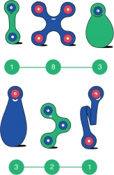 Solo 18 pezzi leggeri con cui creare decine di forme. Si ripongono facilmente nello zaino e si portano ovunque.