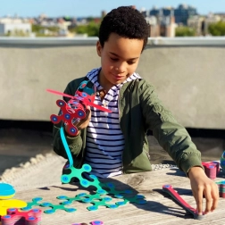 L’innovativo sistema brevettato consente movimento rotante a 360° e fissaggio in 24 posizioni per costruzioni stabili. I pezzi sono impermeabili, leggeri e sicuri (senza BPA e ftalati), adatti al gioco creativo, all’allenamento della concentrazione e all’apprendimento STEAM a casa o alla scuola dell’infanzia. Ispirazioni per i modelli sono incluse nella confezione e altre idee sono disponibili online.