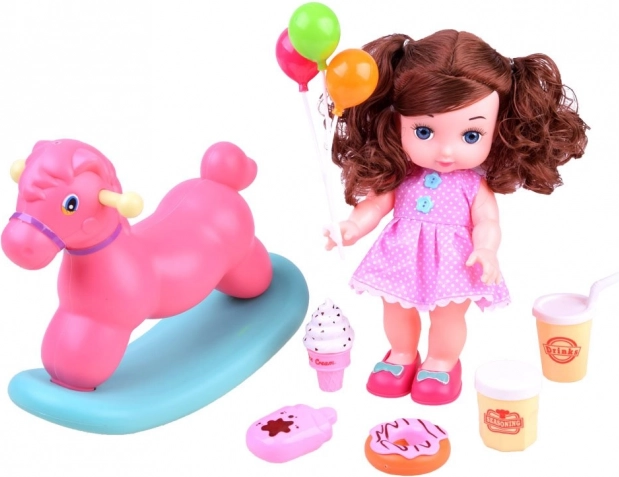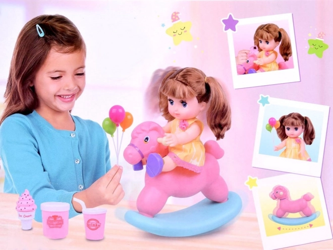 Vivi avventure con questa adorabile bambola, perfetta compagna per momenti di gioco. I lunghi capelli ricci e l’espressione vivace donano realismo, mentre gli abiti morbidi e colorati promettono divertimento alla moda. Il cavalluccio a dondolo rosa offre non solo supporto per l’equilibrio, ma è anche un ottimo complemento per la cameretta.