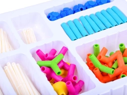 Il set 4M Sticks contiene 106 pezzi di vari colori che i bambini possono facilmente assemblare e smontare. È progettato per permettere ai bambini di sperimentare con diverse forme e strutture, stimolando la loro creatività e pensiero logico. Il set è realizzato in plastica di alta qualità e sicura, garantendo una lunga durata.