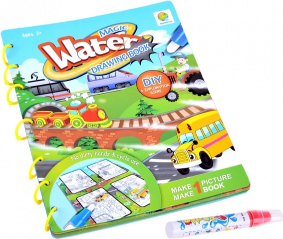 Il libro magico per dipingere con l'acqua permette ai bambini di creare senza disordine. La penna d'acqua consente di scoprire colori e immagini nascosti.