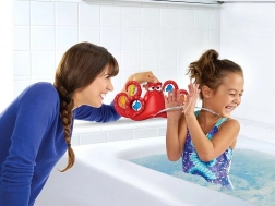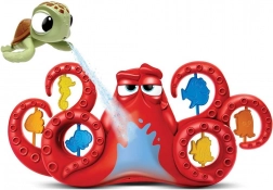 Dopo aver riempito la tartaruga con acqua calda, Hank cambia colore e potrebbe sorprenderti con uno spruzzo d'acqua. Il giocattolo ha un recipiente nella parte inferiore che si riempie d'acqua. Basta premere la testa dell'octopus e la parte inferiore del giocattolo spruzzerà l'acqua.