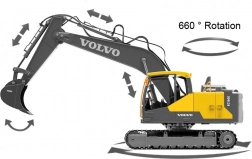 Grazie al telecomando completamente funzionante, puoi governare l'escavatore avanti e indietro e ruotare la cabina fino a 660°.
