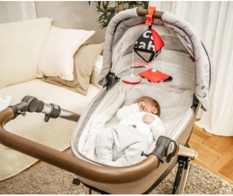 - Uso universale – aggancio rapido a passeggino, lettino o seggiolino auto.