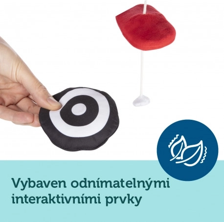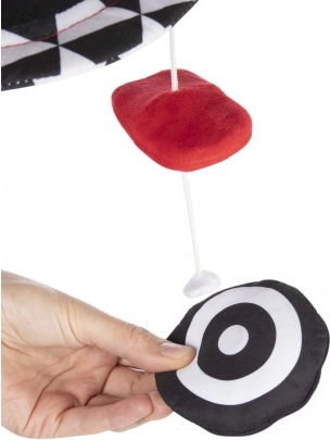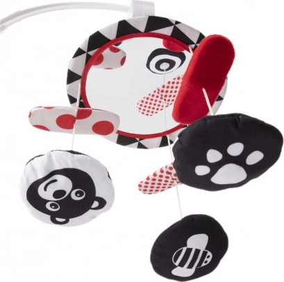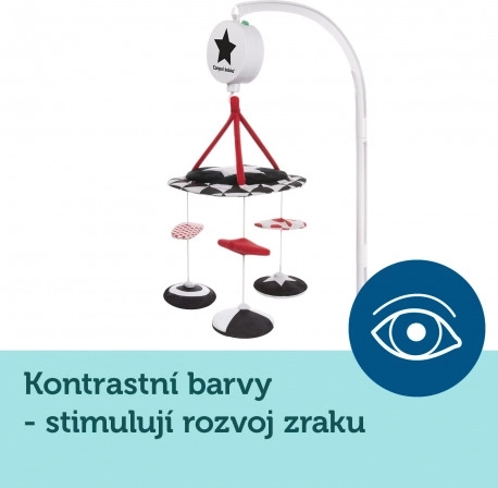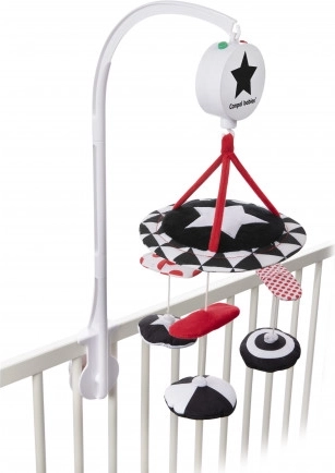 La giostrina in peluche a contrasto con melodie della collezione SENSORY è destinata al fissaggio sopra il lettino per i bambini più piccoli. La giostrina è dotata di carillon musicale, grande specchietto ed elementi in peluche rimovibili con magnete incorporato. Sulla giostrina si possono riprodurre fino a 12 melodie, ideali per favorire l’addormentamento. I colori sensoriali e le melodie stimolano lo sviluppo dei sensi del bambino e la sua coordinazione visivo-uditiva. Per maggiori informazioni sul prodotto guarda questo video: https://www.youtube.com/watch?v=xFGM2JqeIwE Perché i giocattoli sensoriali sono così importanti? La vista del bambino è il senso meno sviluppato alla nascita. L’oscurità predominante nell’utero non consente uno sviluppo completo della vista nel periodo prenatale. Dopo la nascita, la vista del bambino è sfocata e nebulosa. Il bambino vede solo contorni a una distanza di 20-30 cm, grandi forme ed elementi dell’ambiente. Dopo circa un mese inizia a vedere i colori, inizialmente rosso e nero. Dopo circa tre mesi comincia a notare altri colori vivaci. Intorno ai sei mesi inizia a vedere i dettagli nelle immagini e vede molto più chiaramente. Al dodicesimo mese di vita la vista del bambino è già completamente sviluppata come quella di un adulto e diventa un ottimo strumento per esplorare il mondo. I giocattoli sensoriali della nuova collezione SENSORY aiutano a stimolare la vista del bambino e ad allenare la capacità di concentrare l’attenzione fin dalle prime settimane di vita. Sulla collezione SENSORY: La collezione sensoriale di giocattoli è stata sviluppata per bambini fino a un anno. Durante questo periodo avvengono i cambiamenti più significativi nello sviluppo psicomotorio del bambino. I giocattoli sensoriali rispondono alla tendenza attuale del mercato, che punta a sostenere lo sviluppo attraverso il gioco, permettendo al genitore insieme al bambino di stimolare lo sviluppo della vista, esercitare la capacità di concentrarsi su un oggetto, puntare e seguire oggetti con gli occhi, nonché esercitare destrezza e coordinazione. Avvertenza: Posizionare la giostrina in modo che il bambino non possa entrare in contatto diretto con essa. Assemblare il giocattolo seguendo lo schema (i singoli componenti possono differire da quelli illustrati). I giocattoli si muovono, le melodie calmano il bambino e ne facilitano l’addormentamento. Istruzioni per l’uso: Mantenere pulito; pulire il carillon con un panno o una spugna umidi. Le istruzioni per la manutenzione degli elementi in peluche sono indicate sull’etichetta. Avvertenza! Importante per la salute e la sicurezza del tuo bambino! Non utilizzare il giocattolo con bambini che iniziano a sollevarsi autonomamente su mani e ginocchia. In questo modo si evita il possibile impigliamento del bambino nel giocattolo. Avvertenza! Il montaggio e il controllo dell’assemblaggio del giocattolo prima dell’uso devono essere affidati sempre a un adulto. Avvertenza! Importante! Fissare il giocattolo sopra la testa del bambino, nel suo campo visivo. Controllare il prodotto prima di ogni uso. Ai primi segni di usura o danneggiamento, non utilizzare più il prodotto: sostituitelo con uno nuovo. La giostrina è conforme ai requisiti: Direttiva 2009/48/CE del Parlamento europeo e del Consiglio sulla sicurezza dei giocattoli; EN 71 - 1 Sicurezza dei giocattoli - Parte 1: Proprietà meccaniche e fisiche; EN 71 - 2 Sicurezza dei giocattoli - Parte 2: Infiammabilità; EN 71 - 3 Sicurezza dei giocattoli - Parte 3: Migrazione di alcuni elementi.