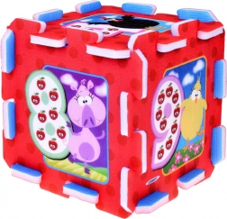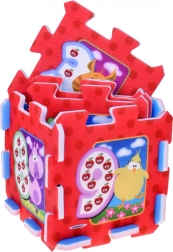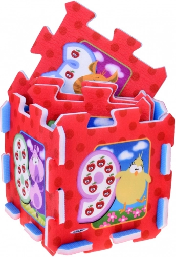 I pezzi si collegano come un puzzle e consentono di creare una superficie piana, ma anche forme 3D (cubi o casette), aumentando il divertimento e lo sviluppo della percezione spaziale. Il tappetino è facile da mantenere – basta passarlo con un panno umido. La superficie antiscivolo contribuisce a una maggiore stabilità durante il gioco.