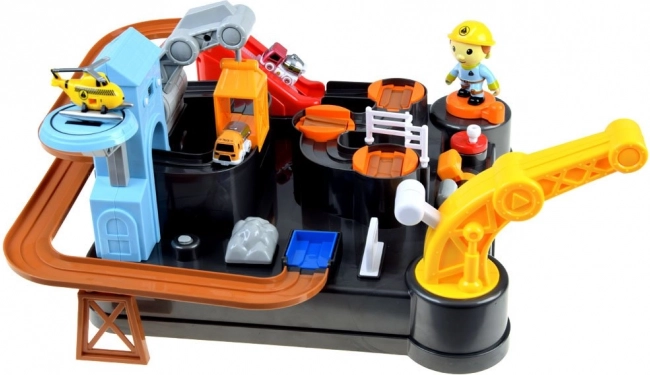 La confezione include tre veicoli da cantiere (dumper, betoniera, autocisterna), un elicottero e la mini-figura del costruttore. La pista è realizzata in plastica resistente e, dopo un semplice montaggio, è pronta per ore di divertimento. Idea regalo ideale per i piccoli appassionati di macchine da cantiere.