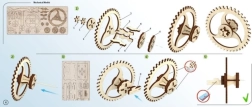 Il modello si assembla senza colla, i pezzi sono tagliati con precisione e corredati da istruzioni illustrate. Con la corretta lubrificazione delle parti indicate con normale cera di candela si garantisce un movimento fluido e affidabile. Una volta montata, la scatola è non solo decorativa ma anche pienamente funzionale – ideale per studio e soggiorno.