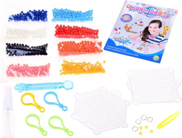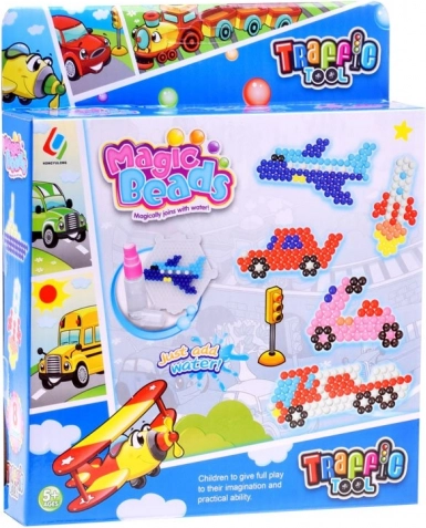Se stai cercando un gioco divertente e creativo per tuo figlio, le perline magiche sono la scelta giusta. Questo set consente ai bambini di sviluppare le proprie capacità creative e la fantasia. Scegli un'immagine dal libretto incluso e inizia a posizionare le perline sul supporto con l'applicatore o le pinzette. Una volta terminato, spruzza le perline con acqua e lascia asciugare.