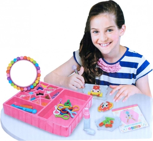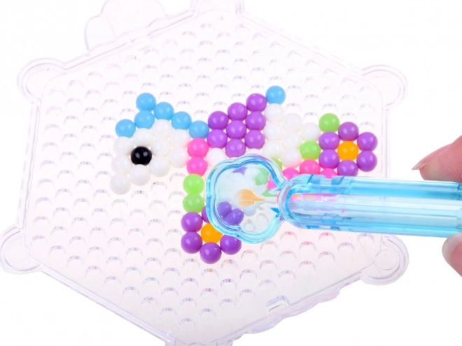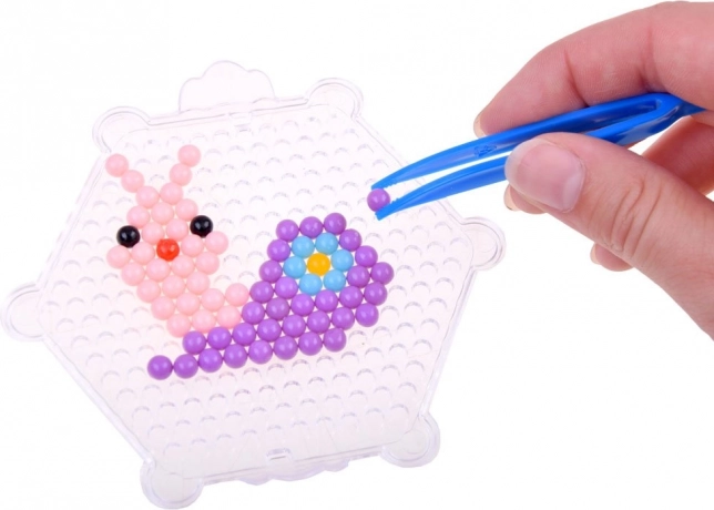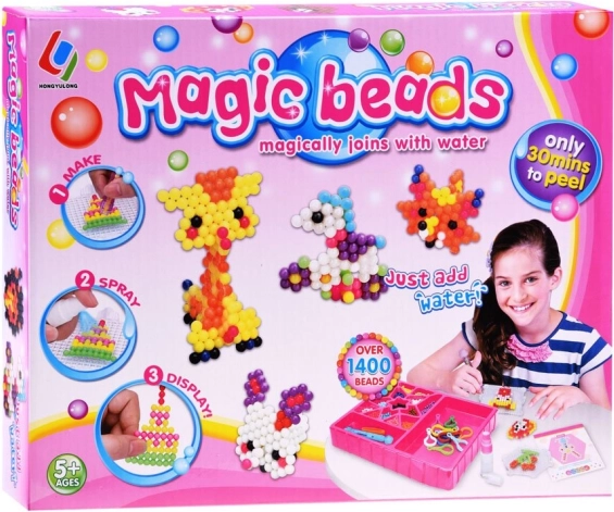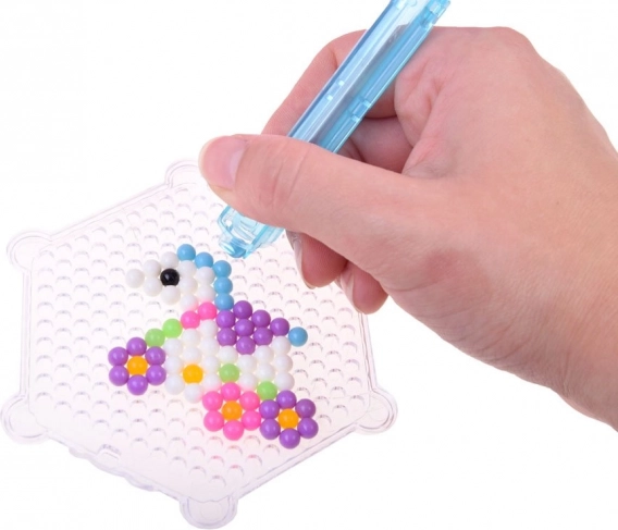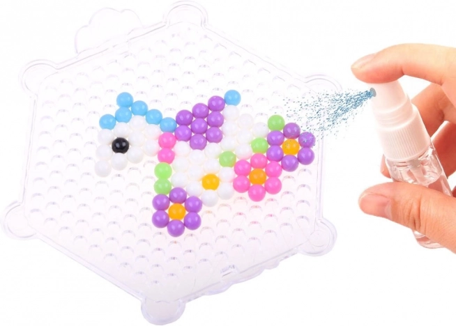 Con questo set creativo, bambini e adulti possono creare decorazioni colorate in modo semplice e divertente. Basta scegliere un motivo dal libro allegato, disporre le perline seguendo il modello e spruzzare acqua per unirle.
