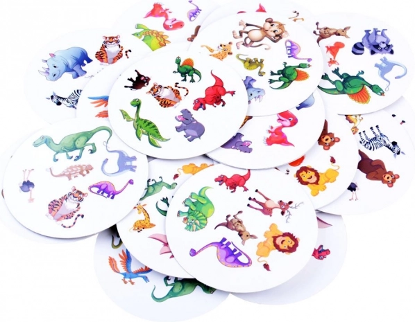 Include fino a 30 carte colorate con illustrazioni uniche di animali come dinosauri, tigri, elefanti e leoni. Queste carte non solo intrattengono, ma supportano anche il riconoscimento visivo e la memoria.