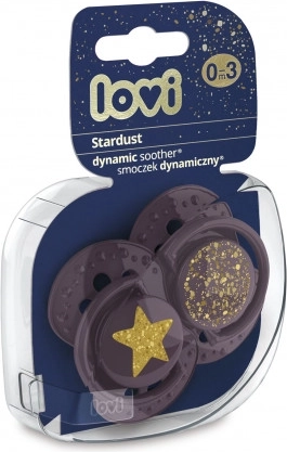 Stardust è qui! Collezione premium unica e dal design inconfondibile di LOVI. Design esclusivo della collezione Stardust: decorazioni con glitter dorati che ricordano il cielo stellato. La collezione vanta il ciuccio dinamico LOVI nella misura 0-3 mesi, sviluppato in collaborazione con neuro‑logopedisti per garantire uno sviluppo naturale e sano del palato, dei denti e delle gengive del bambino. La tettarella del ciuccio si adatta dinamicamente alla suzione del bambino senza alterare il riflesso di suzione. Senza BPA. Confezione da 2 pezzi. SIAMO TUTTI FATTI DI STELLE Il ciuccio dinamico LOVI è stato sviluppato in collaborazione con neuro‑logopedisti per garantire uno sviluppo naturale e sano del palato, dei denti e delle gengive del bambino. Il ciuccio LOVI in silicone simmetrico dinamico è stato testato clinicamente. Tutti i ciucci LOVI sono realizzati in silicone, inodore e insapore. I ciucci in silicone hanno una durata maggiore e sono più facili da mantenere puliti. L’esclusiva tettarella simmetrica dinamica si sfiata molto bene e non deforma il palato del bambino. previene il riflesso di mordere il ciuccio consente una deglutizione naturale della saliva favorisce il corretto sviluppo del linguaggio e dell’occlusione non deforma il palato del bambino si sfiata molto bene La tettarella dinamica è realizzata con strati eterogenei di silicone, quindi si allunga e si accorcia a seconda del ritmo di suzione del bambino. La forma simmetrica ricorda il capezzolo materno. La forma della tettarella permette inoltre di inserire il ciuccio nella bocca del bambino in qualsiasi posizione (non ha un lato superiore e inferiore prestabilito). Il profilo sagomato e intagliato della mascherina consente al bambino di respirare liberamente con il naso. È realizzata in materiale sicuro, privo di BPA. Il bordo unico della mascherina è in materiale medicale, piacevole al tatto e previene i segni di pressione del ciuccio. I fori nella mascherina permettono la circolazione dell’aria, eliminano l’accumulo di saliva dietro la mascherina e prevengono l’irritazione della delicata pelle del bambino. L’anello del ciuccio è ben saldo, facilita la presa e la somministrazione del ciuccio. È possibile agganciare una catenella o un laccetto. Per motivi igienici, il ciuccio è dotato di un cappuccio di protezione in plastica. La scatolina in plastica funge da custodia per la conservazione igienica dei ciucci. I ciucci LOVI hanno ricevuto riconoscimenti dai consumatori finali. I ciucci sono disponibili in molti design moderni e colorati. Il set include: 2 pz di ciucci dinamici LOVI 2 pz di cappucci protettivi in plastica per ciuccio 1 pz di scatolina in plastica Istruzioni per l’uso: Prima del primo utilizzo sterilizzare il ciuccio in acqua bollente per circa 5 minuti per motivi igienici. Dopo il raffreddamento, spremere l’acqua residua dalla tettarella. Prima di ogni utilizzo lavare il ciuccio in acqua tiepida. Non utilizzare disinfettanti chimici! Alte concentrazioni di tali prodotti possono danneggiare le parti in plastica del ciuccio. Non immergere mai il ciuccio in sostanze zuccherate o medicinali: esponete il bambino al rischio di carie dello smalto. Utilizzare il ciuccio per un massimo di 1-2 mesi, quindi sostituirlo per motivi di igiene e sicurezza. Se il ciuccio entra completamente nella bocca del bambino, NON FATEVI PRENDERE DAL PANICO: il ciuccio è progettato in modo che il bambino non possa ingoiarlo e in tali casi può essere rimosso in sicurezza. Rimuovere il ciuccio con la massima delicatezza possibile. Conservare il ciuccio in un astuccio pulito, asciutto e chiuso. Non consigliamo l’uso del ciuccio per bambini sopra i 3 anni. Avvertenza! Importante per la salute e la sicurezza del vostro bambino! Controllare lo stato del ciuccio prima di ogni somministrazione al bambino. Prestate maggiore attenzione al ciuccio dopo l’eruzione dei primi dentini. Verificare l’integrità della tettarella tirandola accuratamente in tutte le direzioni. Ai primi segni di danneggiamento, gettare immediatamente il ciuccio e non usarlo più. Utilizzare solo clip/portaciuccio conformi alla norma EN12586. Non fissare mai il ciuccio con cordini, lacci o nastri degli indumenti: rischio di strangolamento. Non lasciare il ciuccio alla luce diretta del sole, vicino a fonti di calore o in disinfettanti più a lungo del raccomandato: si può causare l’indebolimento della tettarella. Tenere il cappuccio rimosso fuori dalla portata del bambino per evitare possibili rischi di soffocamento. Il ciuccio in silicone è conforme a: Direttiva del Parlamento Europeo e del Consiglio 2001/95/CE sulla sicurezza generale dei prodotti EN 1400 - 1 Prodotti per la cura del bambino - Ciucci per lattanti e bambini piccoli - Parte 1: Requisiti generali di sicurezza e informazioni sul prodotto EN 1400 - 2 Prodotti per la cura del bambino - Ciucci per lattanti e bambini piccoli - Parte 2: Requisiti meccanici e prove EN 1400 - 3 Prodotti per la cura del bambino - Ciucci per lattanti e bambini piccoli - Parte 3: Requisiti chimici e prove I ciucci LOVI non contengono Bisfenolo A.