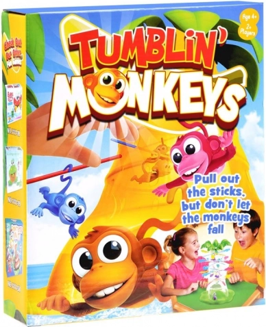 Il gioco Scimmie Che Cadono porta una sfida divertente per bambini e tutta la famiglia. I giocatori estraggono gradualmente i bastoncini colorati dalla palma con l'obiettivo di non far cadere nessuna scimmia. Vince chi raccoglie meno scimmie durante il gioco.