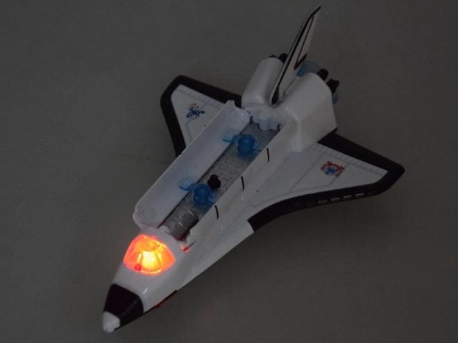 Questa navicella spaziale è il sogno di ogni piccolo amante dello spazio. Con la combinazione di metallo e plastica, offre effetti sonori e luminosi realistici, che si attivano tramite un pulsante situato sotto la parte apribile del veicolo. Premendo questo pulsante, si sentirà il suono del motore a razzo e si accenderà una luce rossa nella cabina di pilotaggio.