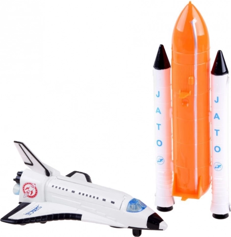 Il set include un modulo dello shuttle di dimensioni 15 cm x 10,5 cm x 6 cm e un serbatoio principale con razzi ausiliari di dimensioni 22 cm x 7 cm x 4 cm.