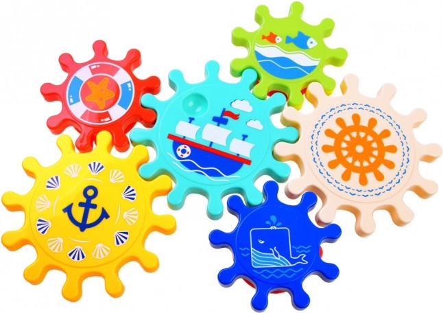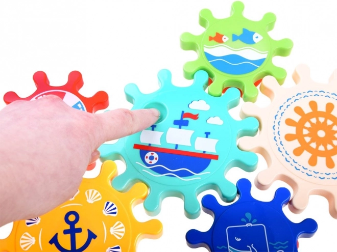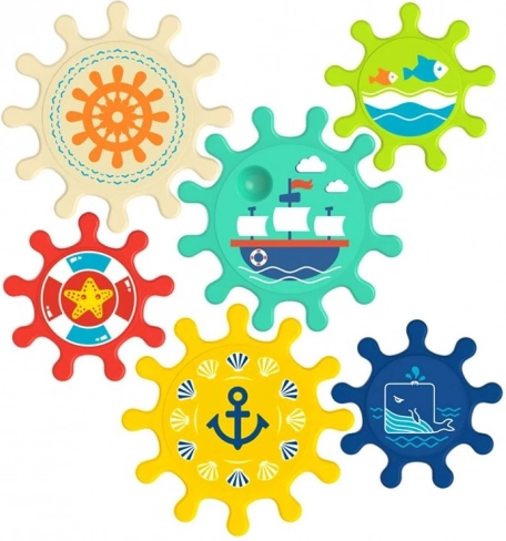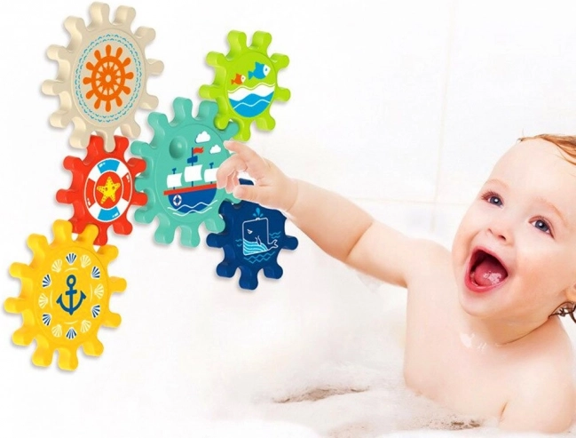 Arricchisci il momento del bagno con questo fantastico set di ingranaggi colorati, che puoi facilmente attaccare alla parete della vasca o della doccia. I bambini adorano girare gli ingranaggi e osservare come si muove l'intera installazione, il che aiuta a sviluppare la motricità fine e il pensiero logico.