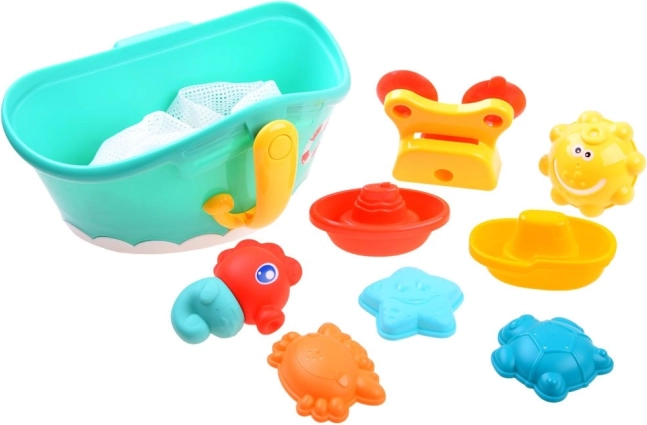 I componenti principali del set includono barchette in plastica, animali marini con aperture per effetti speciali, cavalluccio marino in gomma per giochi d'acqua e un sole sorridente giallo per versare acqua. Il set è progettato per bambini dai 12 mesi, con tutte le parti delle dimensioni adatte alle loro mani piccole.