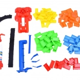 I pezzi colorati in plastica sono realizzati con un materiale resistente che invita a giocare e creare più e più volte.