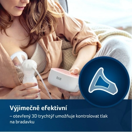 Lo speciale imbuto 3D imita il riflesso naturale di suzione del bambino, permettendo un flusso di latte naturale e aumentando l'efficienza dell'estrazione.