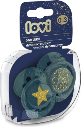 Stardust è qui! Collezione premium unica e dal design inconfondibile di LOVI. Il design esclusivo della collezione Stardust – decorazioni con scintillii dorati che ricordano il cielo stellato. La collezione presenta il ciuccio dinamico LOVI nella misura 0-3 mesi, sviluppato in collaborazione con neurologopedisti per garantire uno sviluppo naturale e sano del palato, dei denti e delle gengive del bambino. La tettarella del ciuccio si adatta dinamicamente alla suzione del bambino, senza interferire con il riflesso di suzione. Senza BPA. Confezione da 2 pezzi. SIAMO TUTTI FATTI DI STELLE Il ciuccio dinamico LOVI è stato sviluppato in collaborazione con neurologopedisti per assicurare uno sviluppo naturale e sano del palato, dei denti e delle gengive del bambino. Il ciuccio LOVI in silicone simmetrico e dinamico è stato testato clinicamente. Tutti i ciucci LOVI sono realizzati in silicone, inodore e insapore. I ciucci in silicone hanno una maggiore durata e sono più facili da mantenere puliti. La tettarella dinamica simmetrica unica si sfiata molto bene e non deforma il palato del bambino. previene il riflesso di mordere il ciuccio consente una deglutizione naturale della saliva supporta il sano sviluppo del linguaggio e dell’occlusione non deforma il palato del bambino si sfiata molto bene La tettarella dinamica è composta da strati di silicone eterogenei, per cui si allunga e si accorcia in base al ritmo di suzione del bambino. La forma simmetrica ricorda il capezzolo materno. La forma della tettarella consente inoltre di inserire il ciuccio nella bocca del bambino in qualsiasi modo (non ha un lato superiore o inferiore). La mascherina sagomata con incavo permette al bambino di respirare liberamente con il naso. È realizzata in materiale sicuro, privo di BPA. Il bordo unico della mascherina è realizzato in materiale medicale, piacevole al tatto e previene i segni di pressione del ciuccio. I fori sulla mascherina consentono la circolazione dell’aria, riducono l’accumulo di saliva dietro la mascherina e prevengono l’irritazione della pelle delicata del bambino. L’anello del ciuccio è saldamente fissato, facilita la presa e la somministrazione del ciuccio. È possibile agganciarvi una catenella o un cordino. Per motivi igienici, il ciuccio è dotato di cappuccio in plastica. La scatolina in plastica funge da custodia per la conservazione igienica dei ciucci. I ciucci LOVI hanno ottenuto il riconoscimento dei consumatori finali. I ciucci sono disponibili in molti design moderni e colorati. Il set comprende: 2 pz di ciucci dinamici LOVI 2 pz di cappucci in plastica per ciuccio 1 pz di scatolina in plastica Istruzioni per l’uso: Prima del primo utilizzo sterilizzare il ciuccio per motivi igienici in acqua bollente per circa 5 minuti. Dopo il raffreddamento, spremere l’acqua residua dalla tettarella. Prima di ogni utilizzo lavare il ciuccio in acqua tiepida. Non usare prodotti chimici disinfettanti! Alte concentrazioni di tali prodotti possono danneggiare le parti in plastica del ciuccio. Non immergere mai il ciuccio in sostanze zuccherate o in medicinali: esponete il bambino al rischio di carie dello smalto. Utilizzare il ciuccio per un massimo di 1-2 mesi, quindi sostituirlo per motivi igienici e di sicurezza. Se il ciuccio entra completamente nella bocca del bambino, NON ALLARMARSI – il ciuccio è progettato in modo che il bambino non possa ingoiarlo e in tali casi può essere rimosso in sicurezza. Rimuovere il ciuccio con la massima delicatezza possibile. Conservare il ciuccio in una custodia pulita, asciutta e chiusa. Sconsigliamo l’uso del ciuccio per bambini oltre i 3 anni. Avvertenza! Importante per la salute e la sicurezza del vostro bambino! Controllare la qualità del ciuccio prima di ogni somministrazione al bambino. Prestate particolare attenzione al ciuccio dopo la comparsa dei primi dentini. Verificare la qualità della tettarella con un’accurata trazione in tutte le direzioni. Ai primi segni di danneggiamento, gettare immediatamente il ciuccio e non utilizzarlo oltre. Usare solo portaciuccio conformi alla norma EN12586. Non fissare mai il ciuccio a cordini, lacci o nastri degli indumenti: il bambino potrebbe soffocare. Non lasciare il ciuccio alla luce diretta del sole, vicino a fonti di calore o in soluzioni disinfettanti più a lungo del consigliato: si può causare l’indebolimento della tettarella. Tenere il cappuccio rimosso fuori dalla portata del bambino per evitare il rischio di soffocamento. Il ciuccio in silicone è conforme a: Direttiva 2001/95/CE del Parlamento europeo e del Consiglio sulla sicurezza generale dei prodotti EN 1400 - 1 Prodotti per la cura del bambino – Ciucci per lattanti e bambini piccoli – Parte 1: Requisiti generali di sicurezza e informazioni sul prodotto EN 1400 – 2 Prodotti per la cura del bambino – Ciucci per lattanti e bambini piccoli – Parte 2: Requisiti meccanici e prove EN 1400 - 3 Prodotti per la cura del bambino – Ciucci per lattanti e bambini piccoli – Parte 3: Requisiti e prove chimiche I ciucci LOVI non contengono Bisfenolo A.