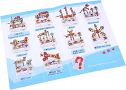Quadrati, triangoli, ruote e pezzi perforati in colori vivaci stimolano creatività, pensiero spaziale e pianificazione logica.