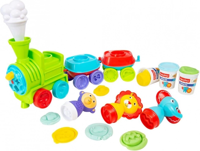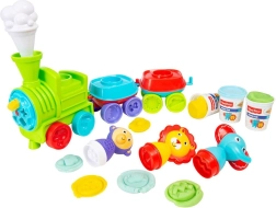 Questo trenino colorato con vagoni e personaggi scimmietta, elefante e leone offre ai bambini tante possibilità per modellare e timbrare la pasta da modellare. Nel camino della locomotiva c’è un estrusore speciale: inserite un pezzetto di pasta e, con il rullo a forma di nuvola, create forme divertenti direttamente sulla parte anteriore della locomotiva.