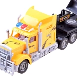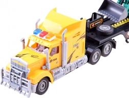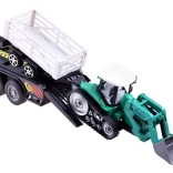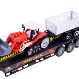 Il camion con pianale ribassato trasporta in sicurezza il trattore con rimorchio. Una combinazione perfetta per ore di gioco creativo.