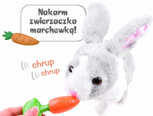Nella confezione è inclusa una carota. Avvicinandola al musetto, il coniglietto emette realistici suoni di sgranocchiamento – perfetto per i giochi di alimentazione.